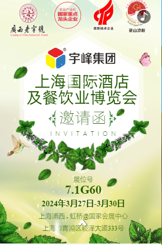 宇峰集團上海國際酒店及餐飲業(yè)博覽會,展位:7.1G60,參展時間2024年3月27日—3月30日,上海國際會展中心我們等您哦!