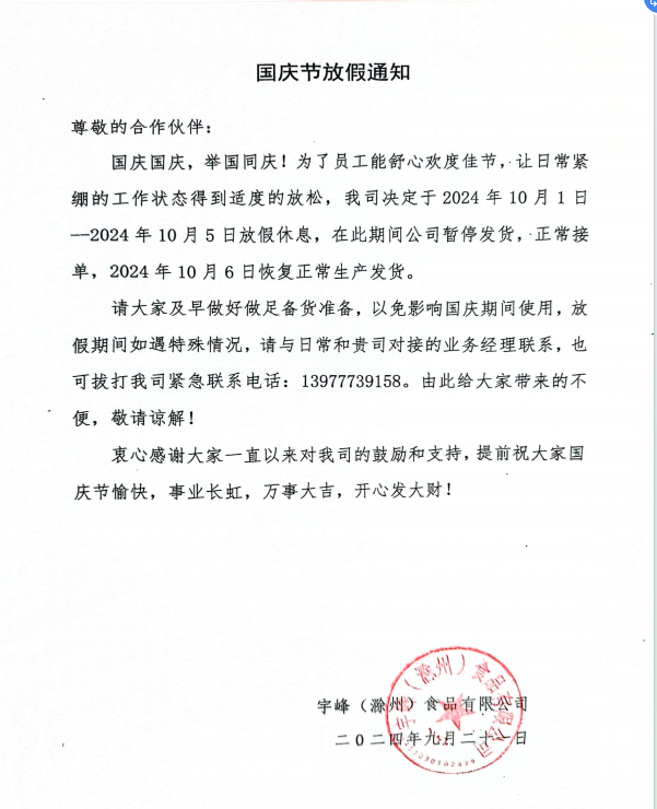 2024年國慶放假通知