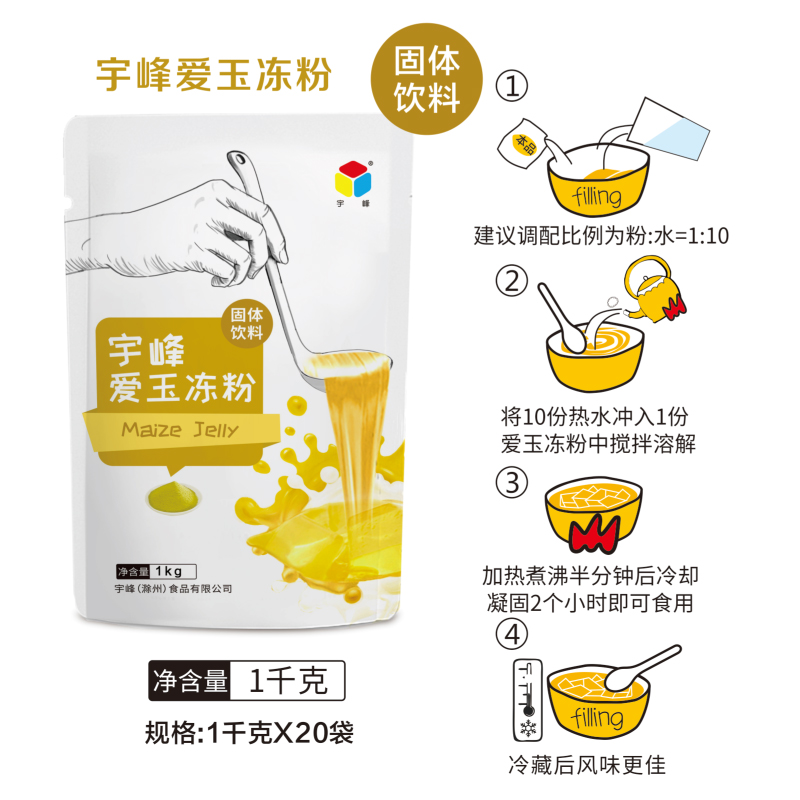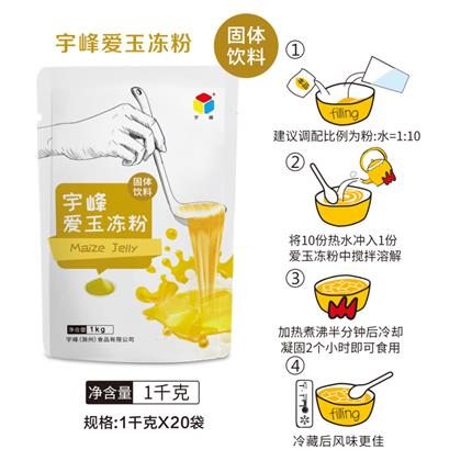 1.先把400ml水燒至沸騰,調至小火,倒入宇峰愛玉凍粉60g,攪拌到無顆粒,小火2分鐘后關火。